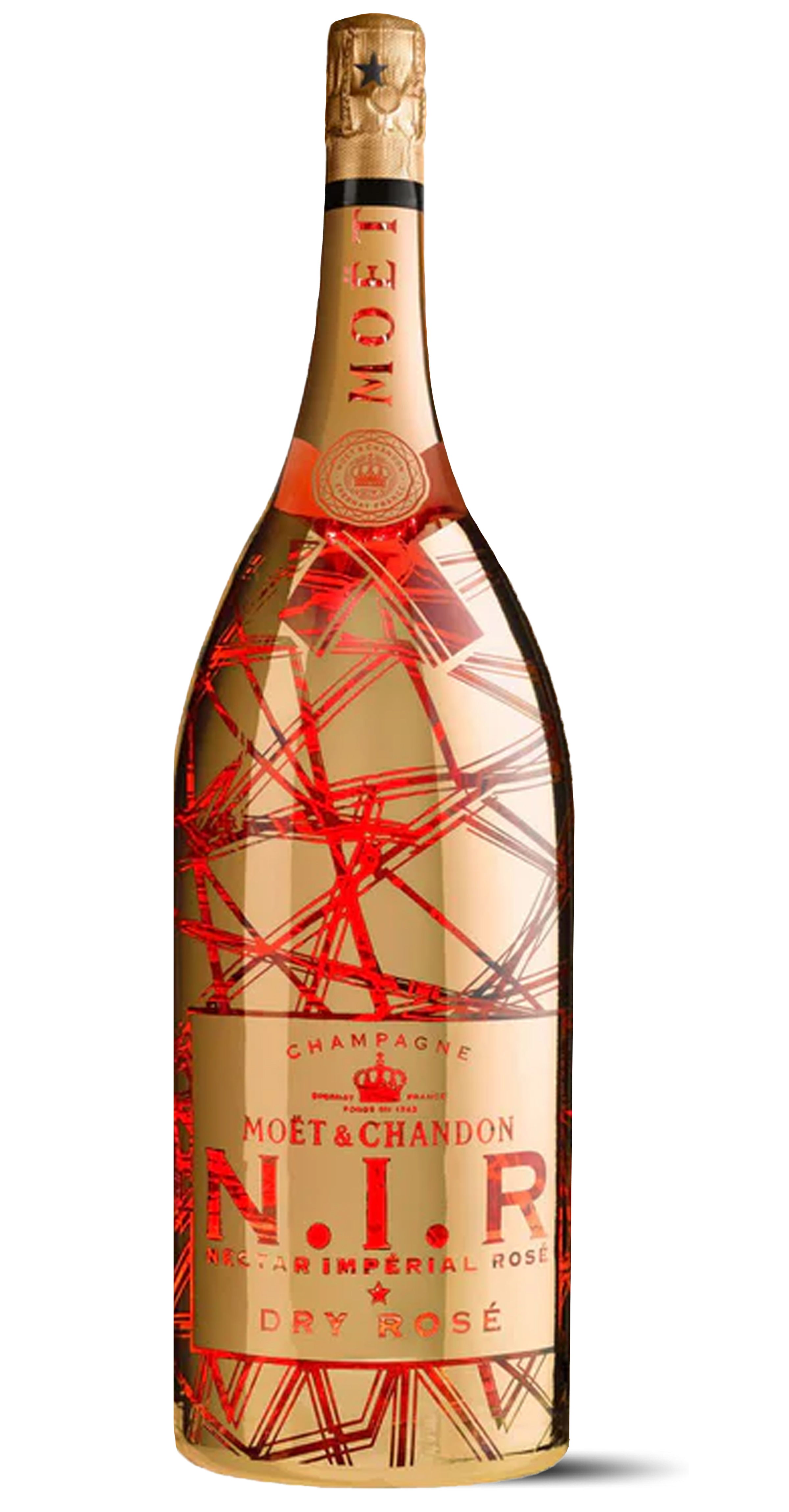 The Moët & Chandon NIR Dry Rosé (NIR stands for Nectar Impérial Rosé) is a striking, extravagant Champagne specially designed for a luxurious nightlife experience. This rosé champagne not only stands out for its taste, but especially for its festive appearance—the bottle literally lights up thanks to a built-in LED light strip at the bottom. The NIR Dry Rosé is a semi-dry Champagne, so slightly sweeter than a Brut, which makes it ideal for festive settings or pairing with spicy and exotic dishes.