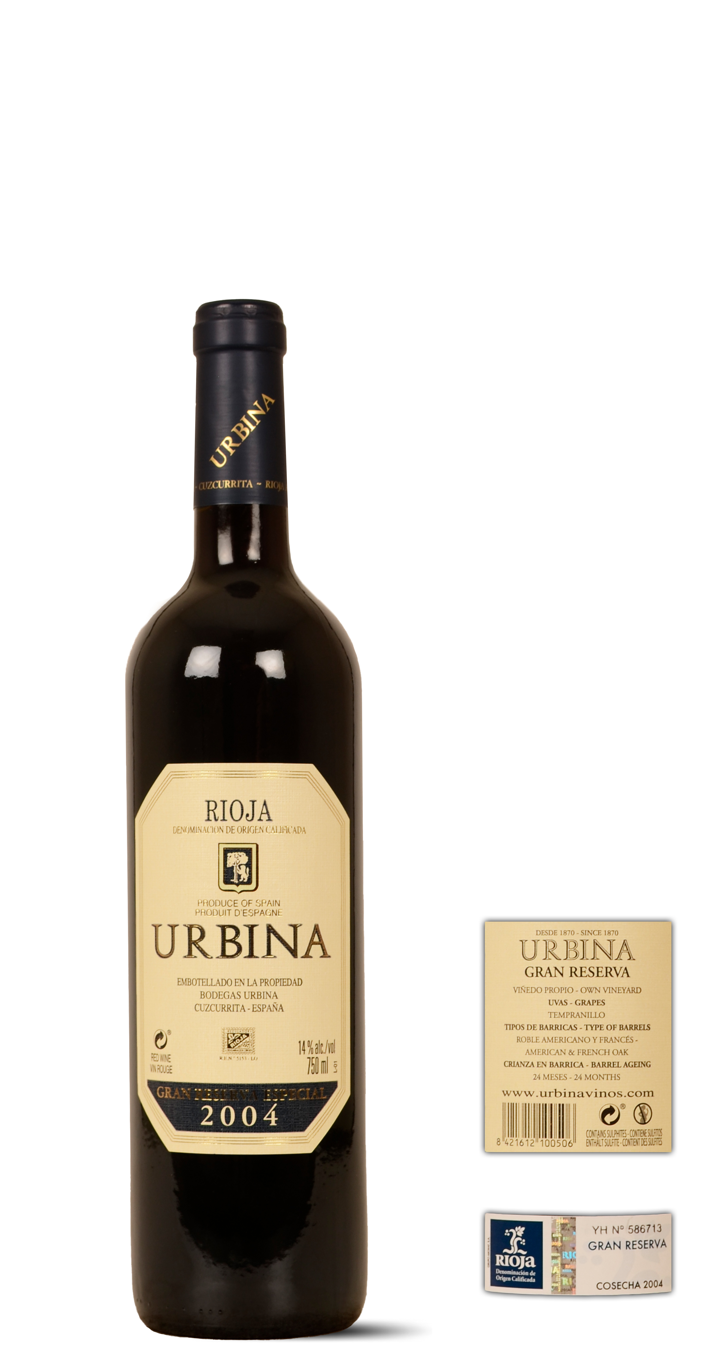 2004 BODEGAS URBINA Rioja Gran Reserva Tempranillo 0.75 Ltr. Tinto