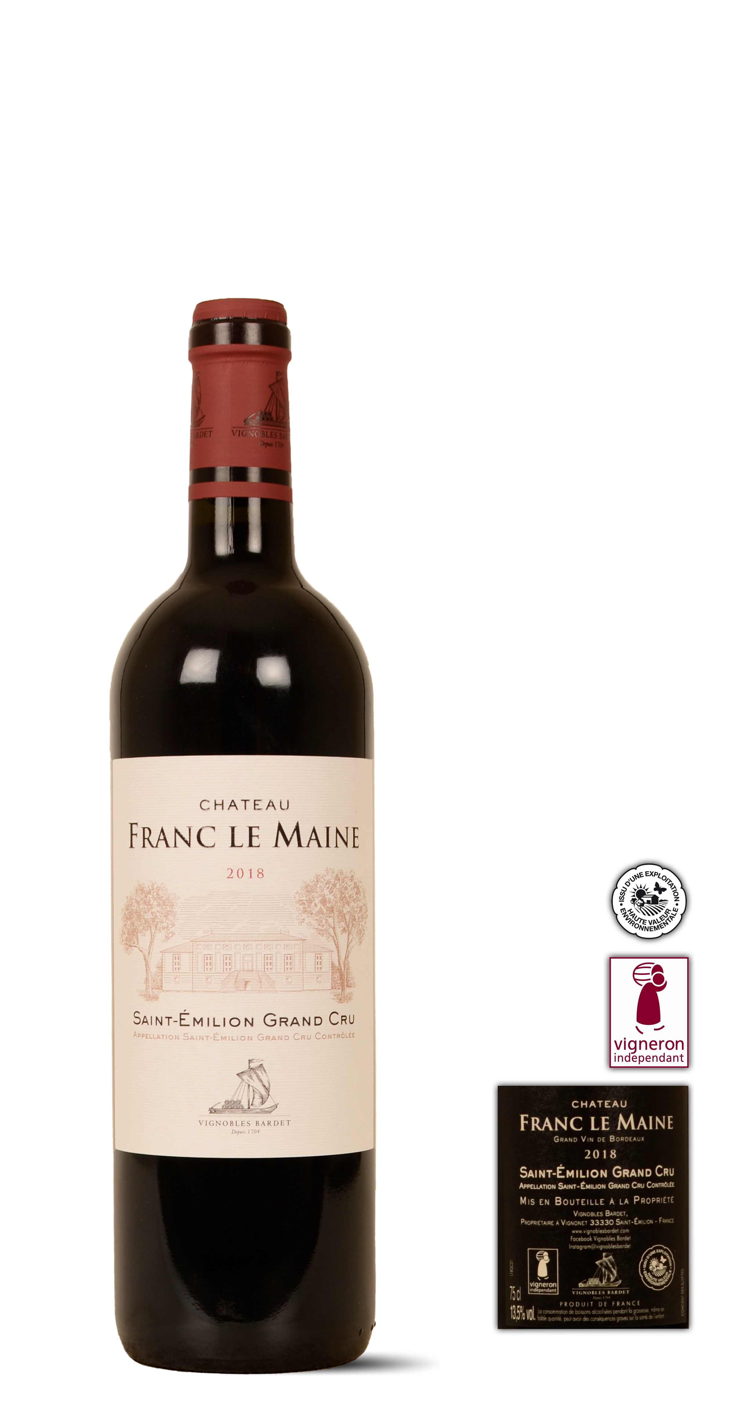 2018 Vignobles Bardet Château Franc Le Maine Saint-Emilion Grand Cru 0.75 Ltr. Rouge